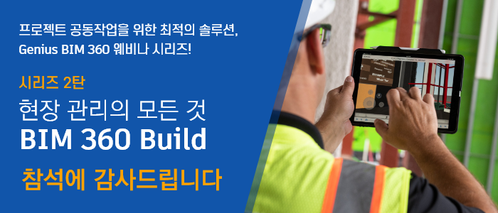 지난 9월 5일(목)에 진행되었던 웨비나는 <Genius BIM360 Webinar Series>의 두 번째 시간으로 현장에서 이슈를 간편하게 확인하여 공기 단축과 손쉬운 협업이 가능한 BIM360 Build에 대해 소개해 드릴 수 있어 뜻깊은 시간이었습니다.